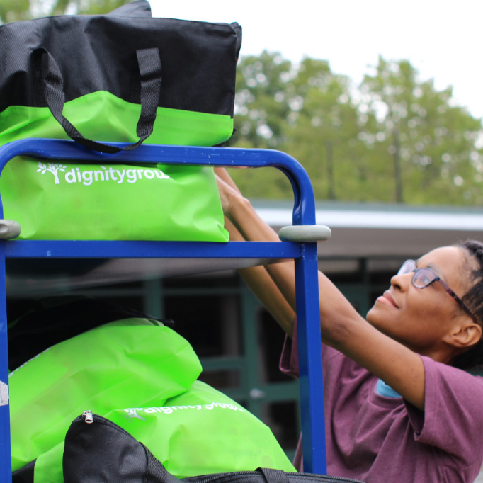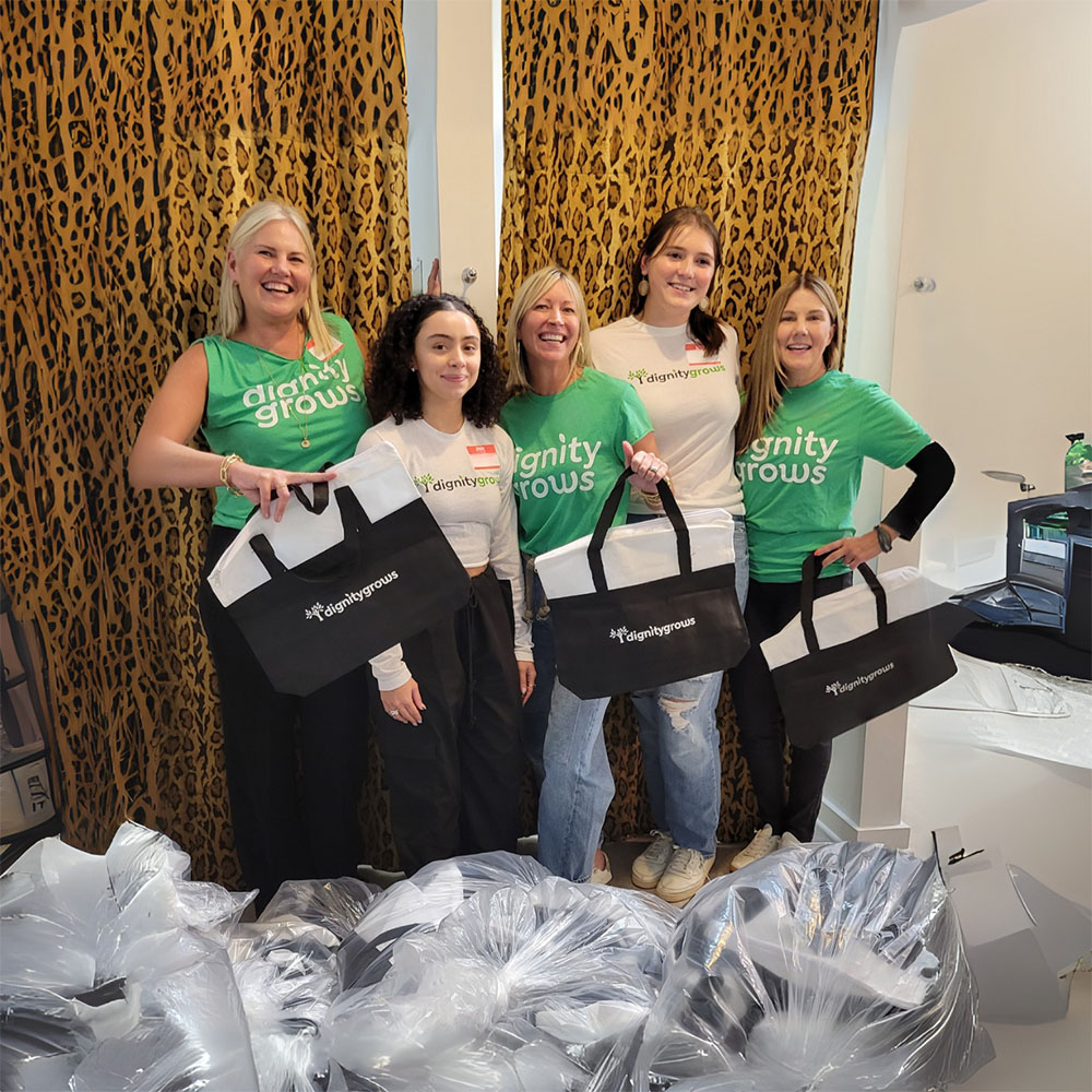 Hope in a Bag is a signature Dignity Grows program, facilitated by local chapters across the country. Each month, hygiene tote bags are distributed through trusted partner organizations to ensure that women, girls, and families have what they need to thrive.